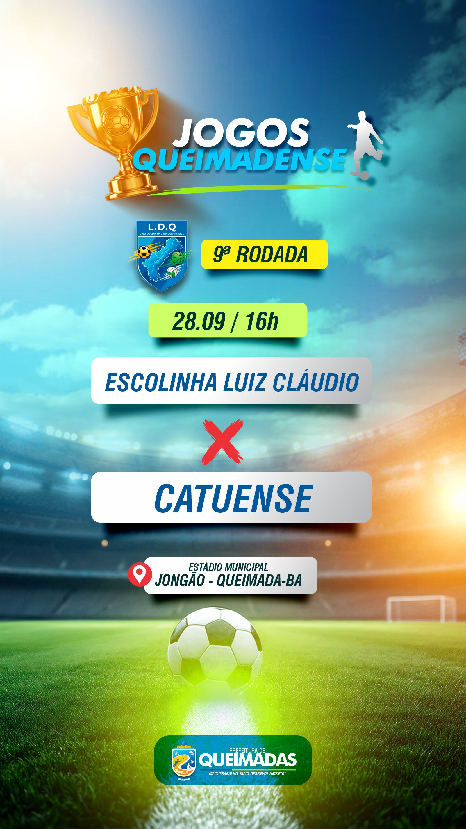 A Prefeitura de Queimadas e a LDQ convidam toda a comunidade para prestigiar mais essa rodada. Vista sua camisa, traga sua torcida e venha vibrar com o seu time no Jongão!