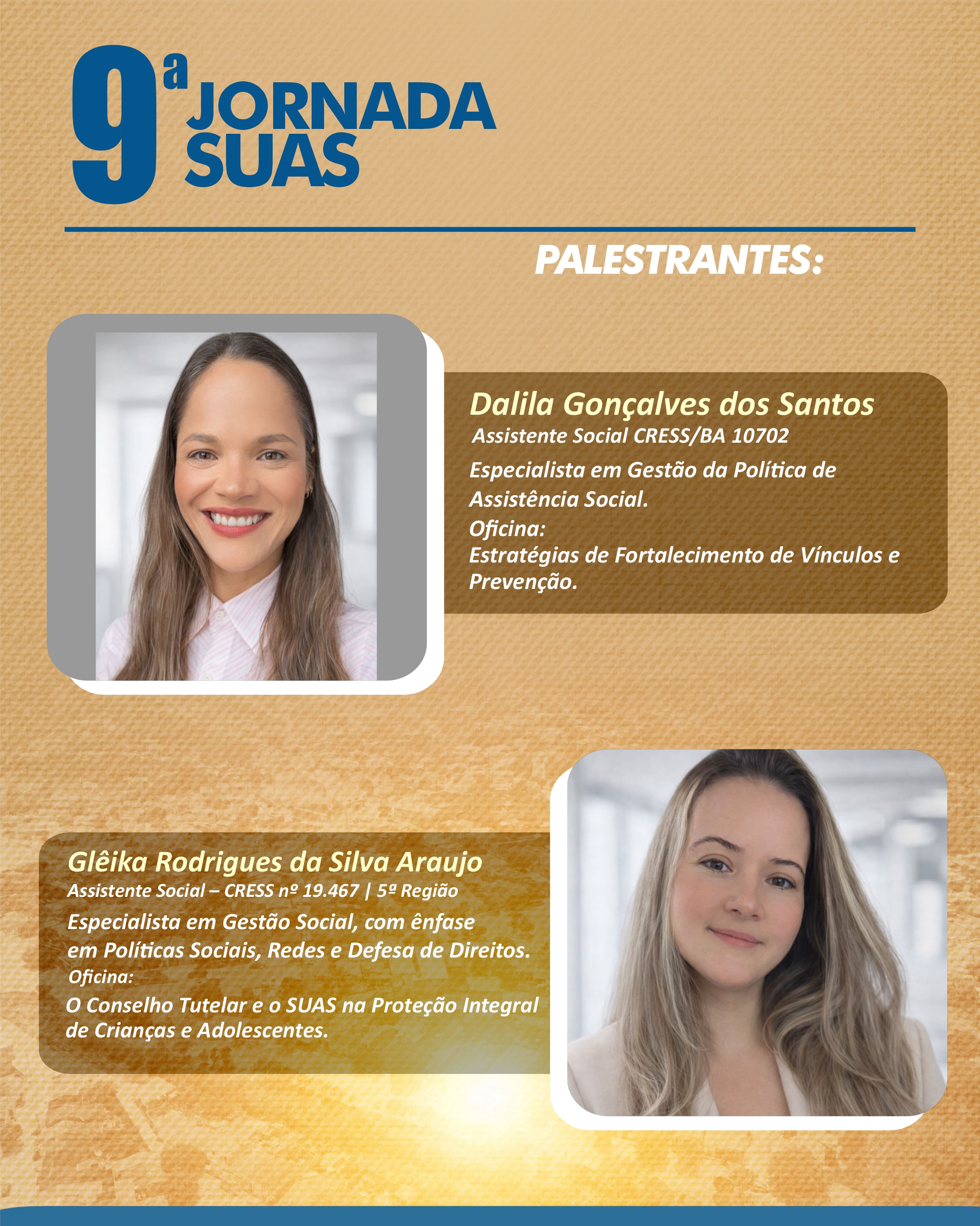 > A 9ª JORNADA SUAS TERÁ AS SEGUINTES PALESTRAS E OFICINAS: