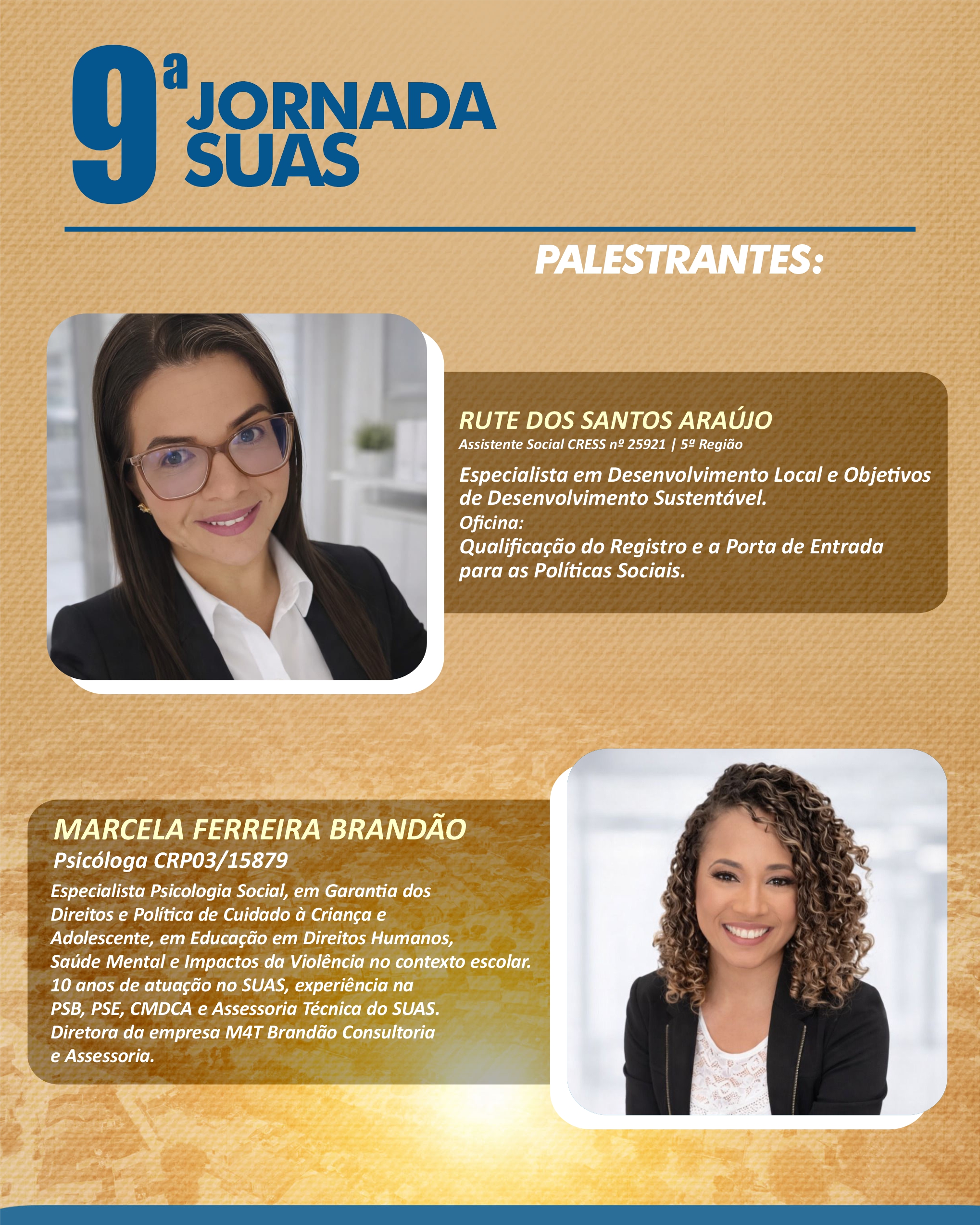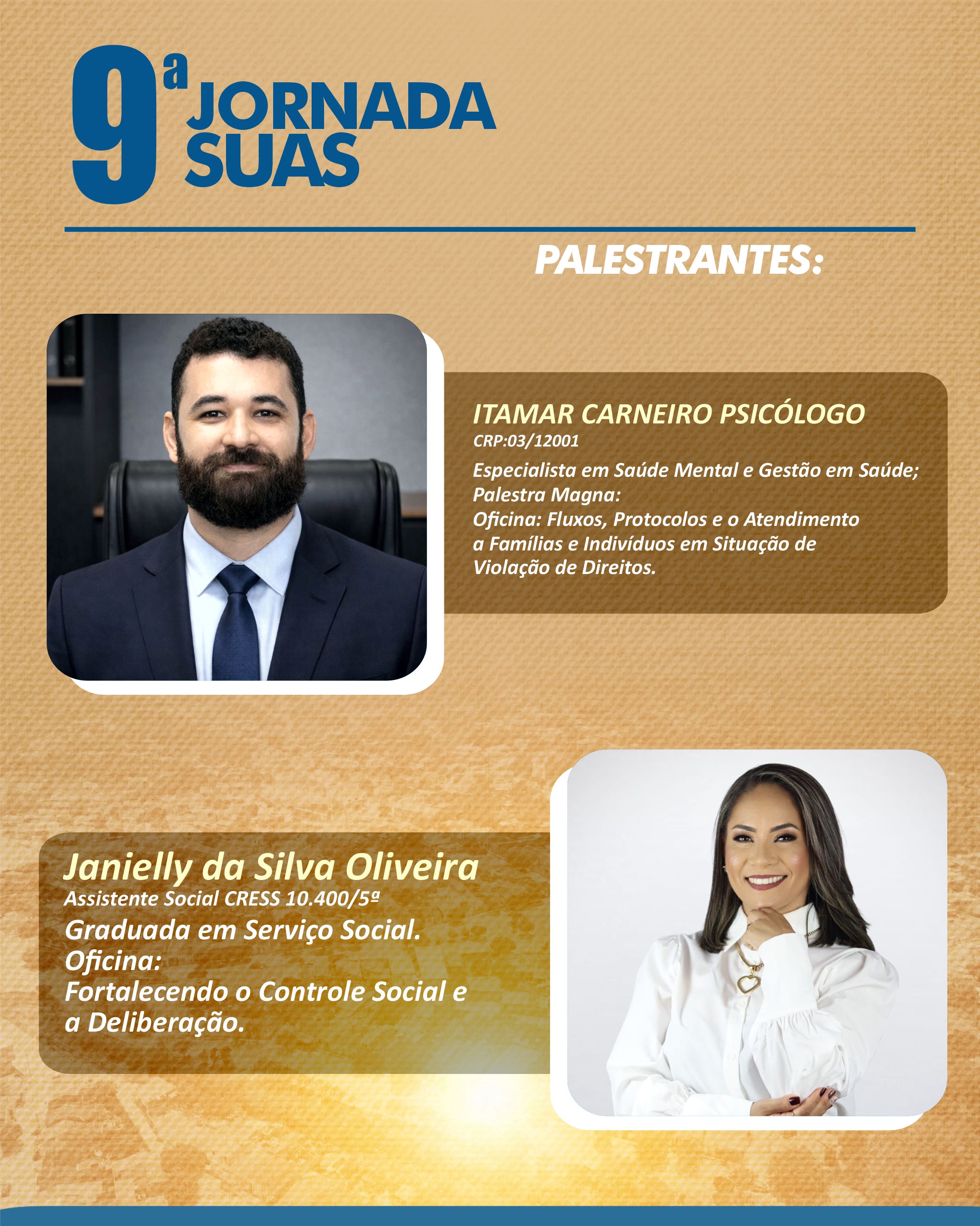 > A 9ª JORNADA SUAS TERÁ AS SEGUINTES PALESTRAS E OFICINAS: